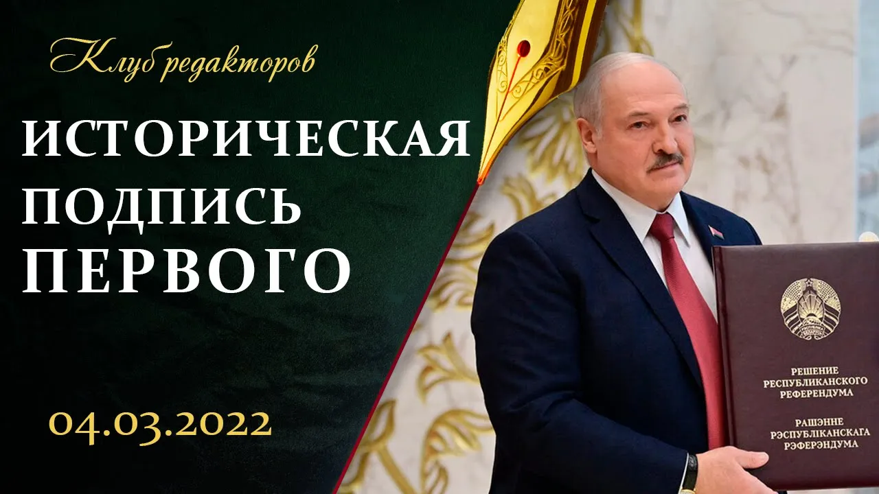 01:14:54Лукашенко: подпись под референдумом. Запад не хочет мира на Украине. Клуб редакторовNEWS.BY: новости Беларуси и мира04.03.2022