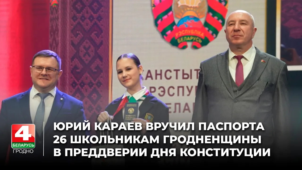 02:14Юрий Караев вручил паспорта 26 школьникам Гродненщины в преддверии Дня КонституцииТелерадиокомпания Гродно13.03.2026132 прагляды